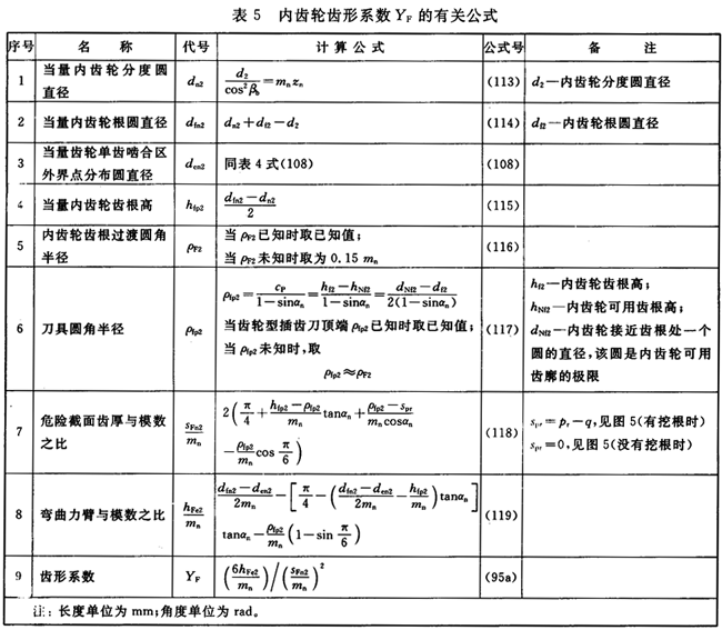 内齒輪的YF用表5中的公式計算。