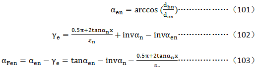 假定用一個特殊齒條的齒形系數值近似地替代内齒輪的齒形系數。該齒條的齒廓是基本條齒廓的一種改型,它能展成内齒輪的精確配對齒輪的法向齒廓(包括齒頂圓與齒根圓),齒頂載荷角爲αn