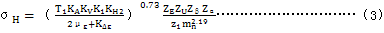 5.1.3雙圓弧齒輪齒面接觸應力σH按式(3)計算 :