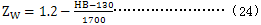 HB——齒輪副中較軟齒輪輪齒面的布氏硬度值;當HB<130時,取ZW=1.2;當HB>470時 ,取ZW=1;當大小輪有相同的硬度時,取ZW=1.0。