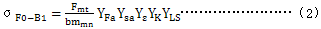 應用B2法時 ,用複合幾何系數YP­代替計算齒根應力基本值的式(2)中的系數YFa、Ysa、Yε、YLS和YK,所以
