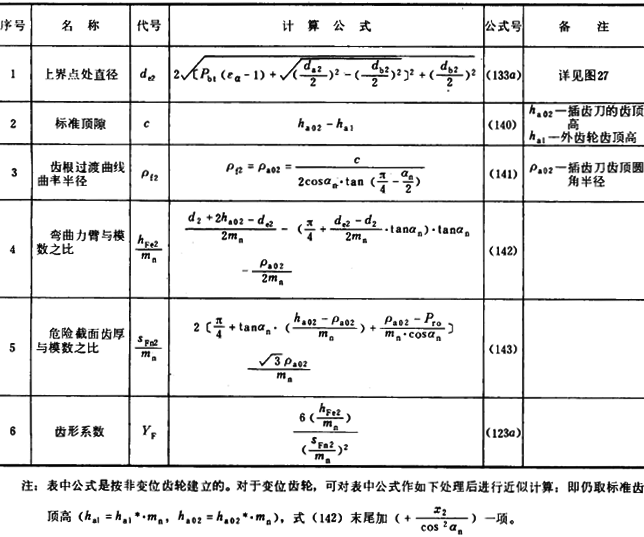 ρf——30°切線切點處曲率半徑 。外齒輪由式(132)計算,内齒輪由式(141)計算 。