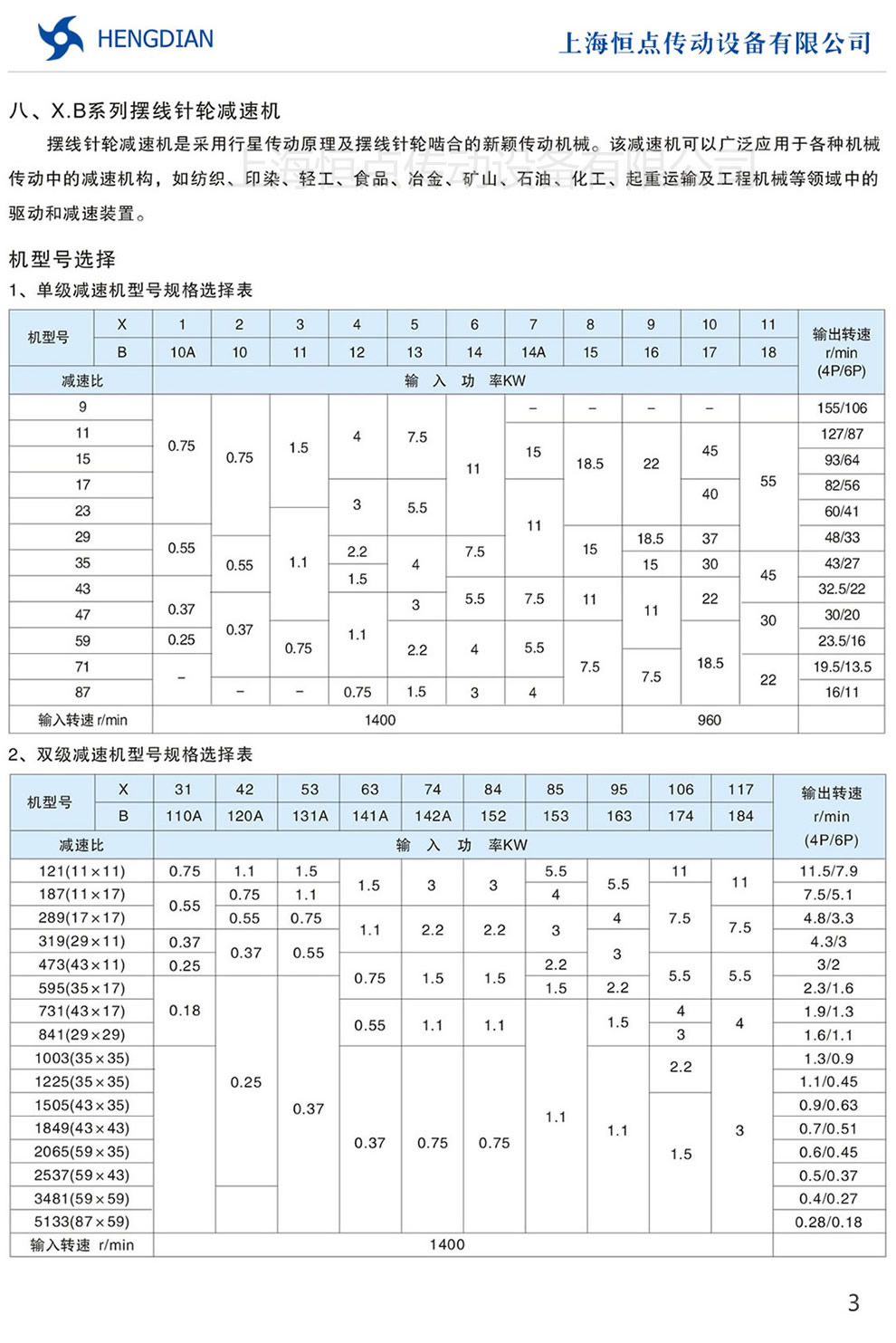 3 - X/B系列減速機輸出許用扭矩表 4 - 單(dān)級,雙級擺(bǎi)線減速機型号規格選擇表