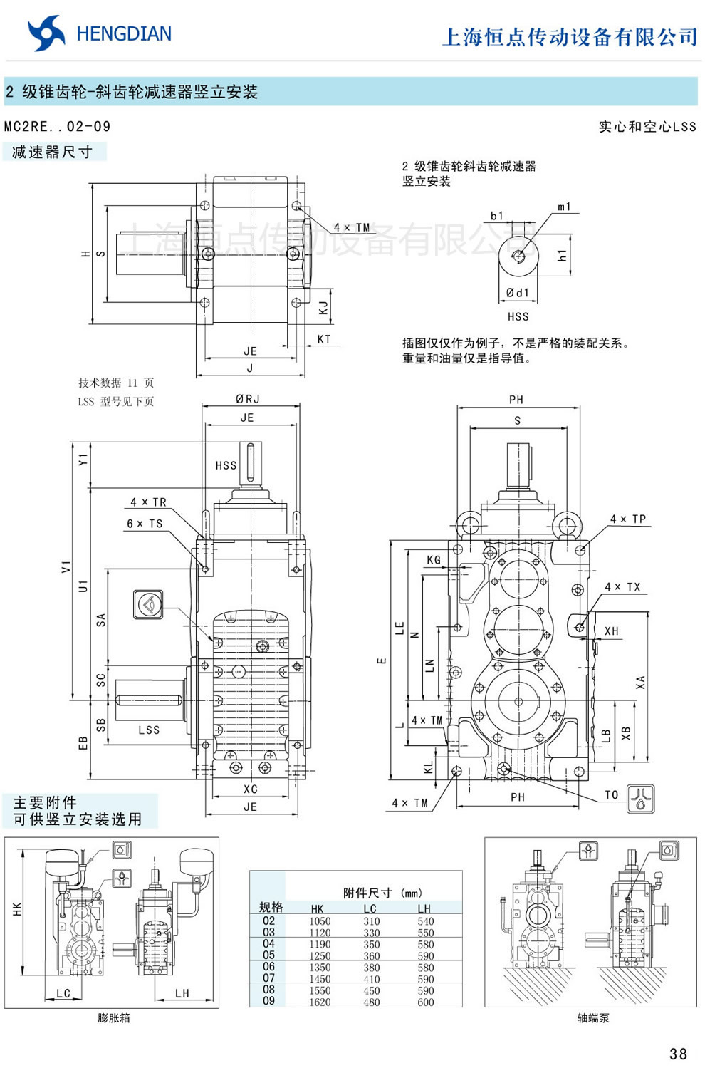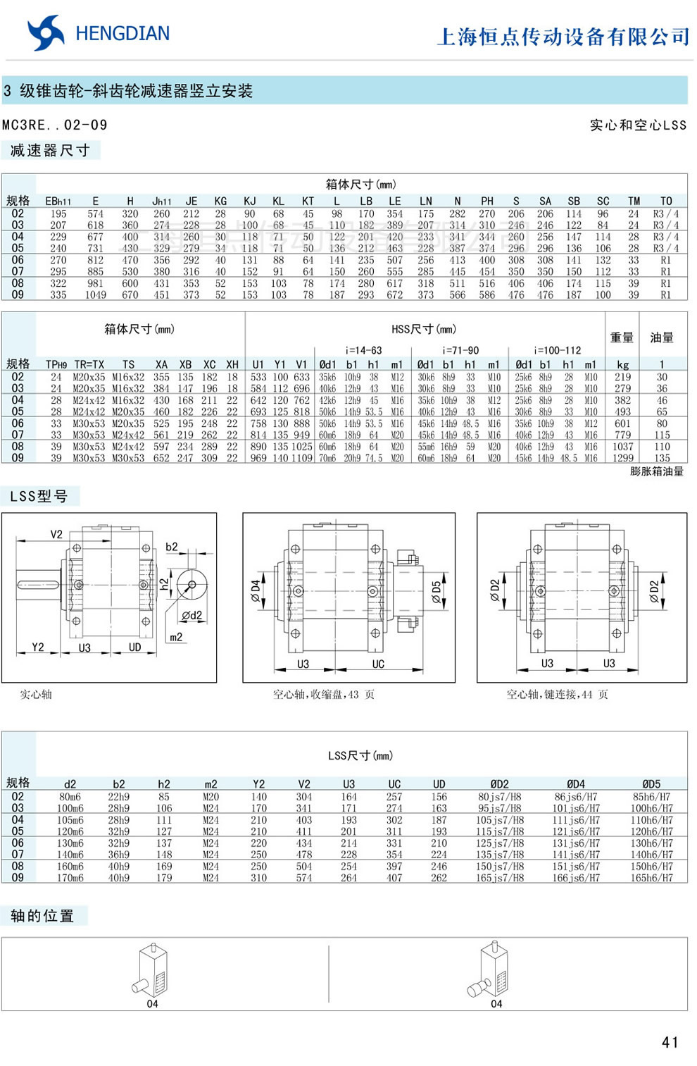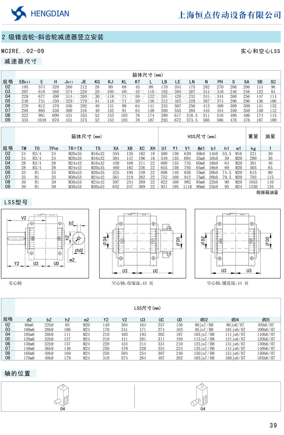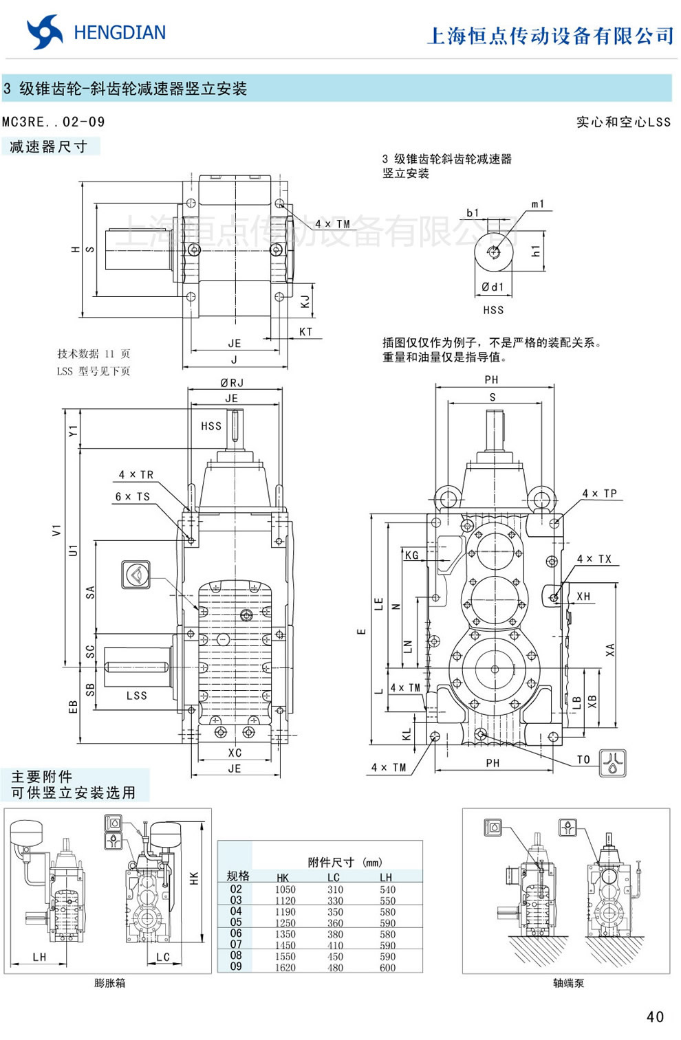 傳動能力和外型安裝尺寸/錐齒-斜齒豎立安裝 - MC硬齒面減速器